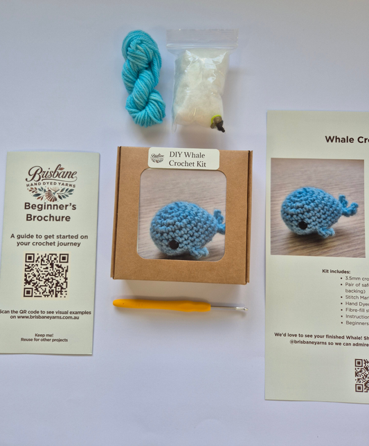 DIY Whale Crochet Kit – Beginner-Friendly Amigurumi (Blue Hand Dyed Merino Wool)